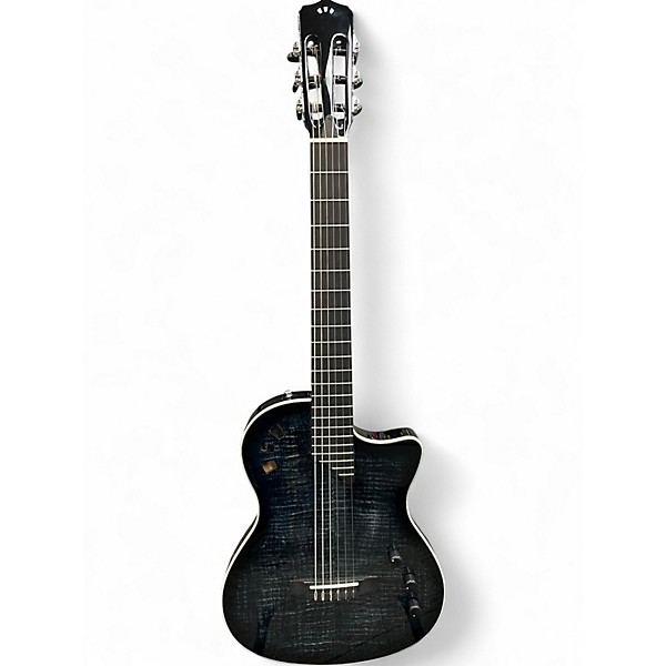 Used Cordoba Stage Classical Acoustic Electric Guitar in striking Black Burst finish and great condition. This performance-focused nylon-string features a solid spruce top with a figured flamed maple veneer, chambered mahogany body, and ergonomically friendly thin body design. The comfortable neck profile complements a slightly radiused fingerboard for easy playability. Equipped with Cordoba's Stage Pickup System with undersaddle piezo and contact sensor for versatile amplified tones. Ideal for live performers seeking classical tone with modern playability.