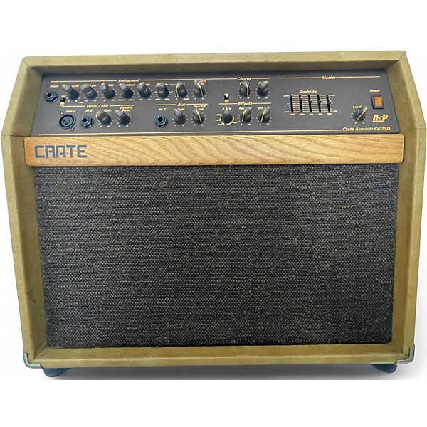 Used Crate CA125DG Telluride 125W Acoustic Guitar Combo Amp in good condition, featuring dual channels with independent EQ, built-in digital effects, and a 12" speaker for rich, full sound. With 125 watts of power, it's ideal for gigs or practice, offering both microphone and instrument inputs for versatile performance. The amp includes feedback elimination tools and delivers warm, natural acoustic tone. Reliable and stage-ready, this combo amp is a solid choice for acoustic performers.