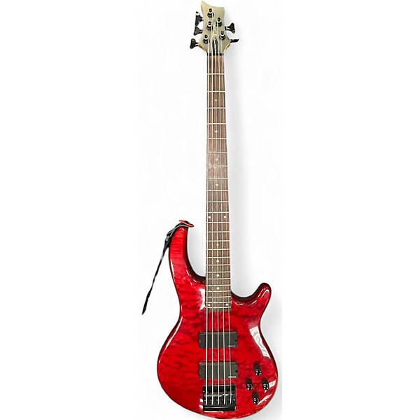 Used Dean Edge 5 String EMG Trans Red Electric Bass Guitar