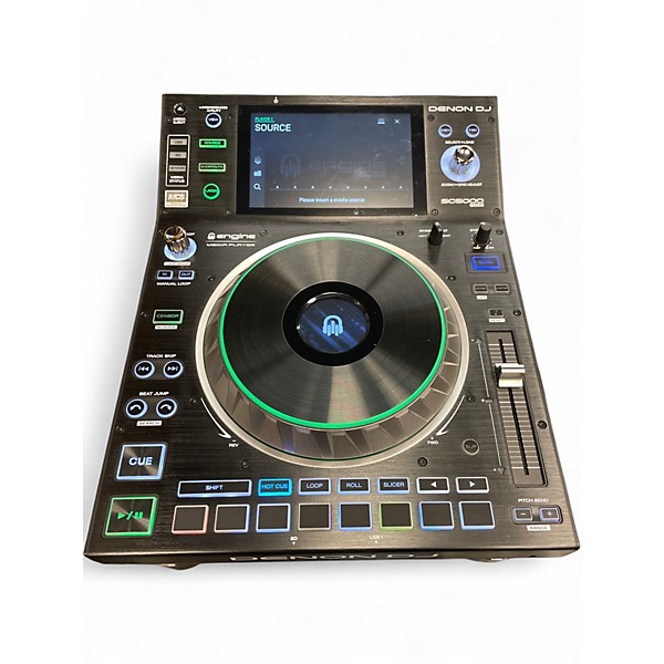 Used Denon DJ SC5000 PRIME media player in excellent condition, built for pro-level performance with a 7-inch multi-touch HD display, 8.5-inch high-resolution jog wheel, and dual-layer playback to control two tracks from one deck. Enjoy ultra-fast track loading, onboard key sync and time-stretching, and tight cue/loop control. Supports USB drives and SD cards, includes LAN connectivity for linking players, and offers 24-bit audio for clean, punchy sound.