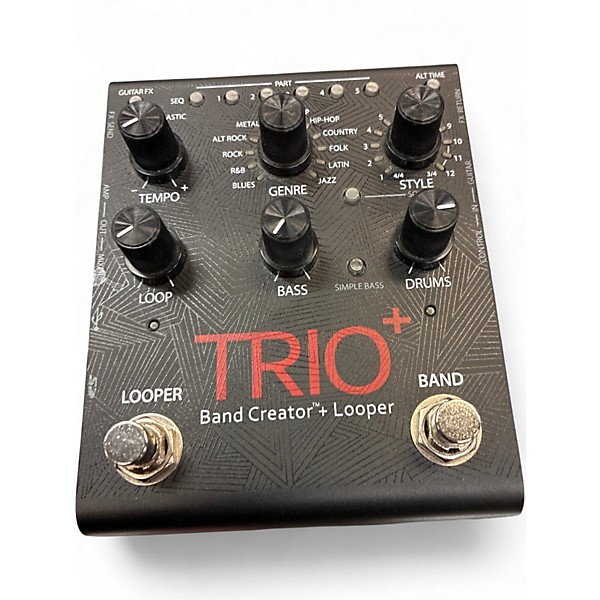 Used DigiTech Trio+ Band Creator Plus Looper Pedal in great condition. This powerful pedal automatically generates bass and drum accompaniments to match your guitar playing in 12 genres and 12 styles per genre. It features a built-in looper with unlimited overdubs, tempo control, and the ability to save up to 12 songs. Ideal for solo practice or live performance, the Trio+ transforms your playing into a full-band experience with intuitive controls.