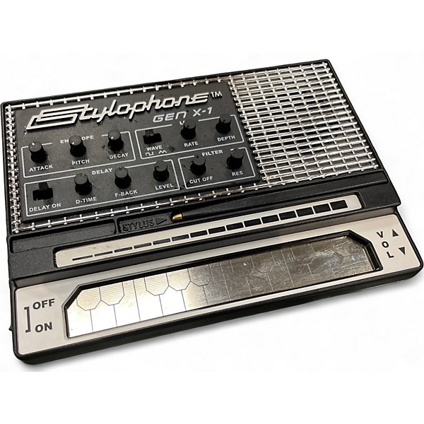 Discover gritty analog-style leads and retro charm with this used Dubreq Stylophone Gen X-1 Synthesizer in great condition. This compact, touch-controlled synth features a built-in speaker, stylus play surface, headphone output, and an external input for processing other audio. Shape your sound with simple onboard controls and enjoy expressive vibrato and classic stylophone tones that are perfect for electronic, indie, and experimental music setups.
