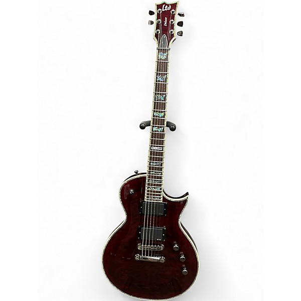 Turn heads with this used ESP LTD EC-1000 Deluxe Quilted Red solid-body electric guitar in good condition, built for modern rock and metal with classic single-cut comfort. Featuring a quilted maple top over a mahogany body, set mahogany neck, 24-fret rosewood fingerboard, and a 24.75" scale length, it delivers fast playability and rich sustain. Dual high-output humbuckers, 3-way toggle, and individual volume/tone controls provide punchy, versatile tones.