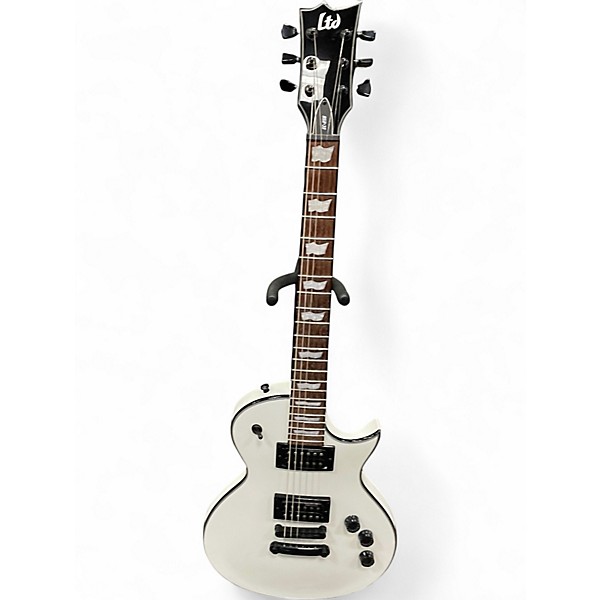 Turn heads with this used ESP LTD EC-256 in Arctic White, a sleek solid-body electric guitar in great condition built for punchy rock and modern tones. It features a comfortable single-cutaway design, set-neck feel, a 24.75" scale, 22 extra-jumbo frets, and dual humbucking pickups with a 3-way selector plus volume/tone controls for everything from warm cleans to tight, high-gain bite.