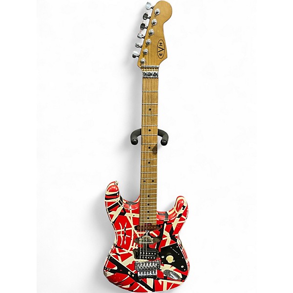 Used 2024 EVH Striped Series Frankie Red with Black and White Stripes RELIC Solid Body Electric Guitar