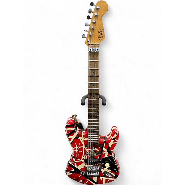 Used EVH Striped Series Frankie Red with Black and White Stripes Solid Body Electric Guitar