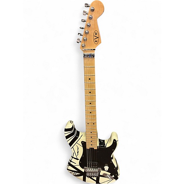 Used EVH Striped Series WHITE WITH BLACK STRIPES Solid Body Electric Guitar