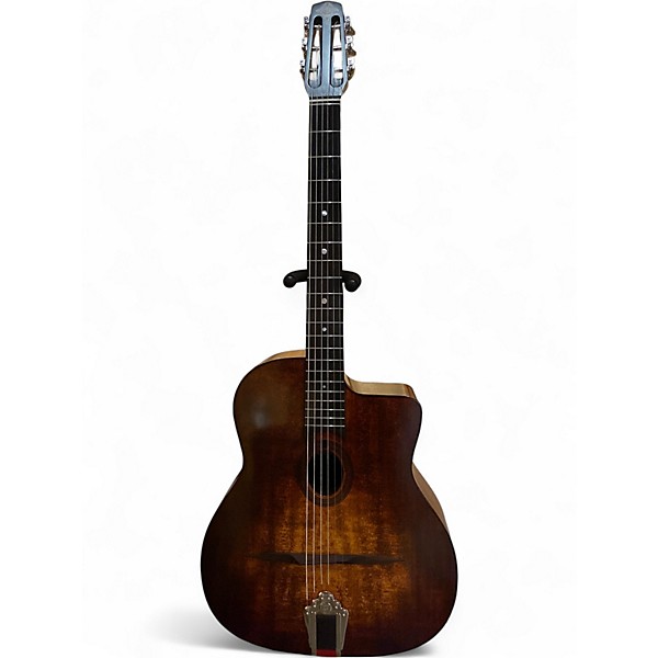Experience rich tone and classic style with this used Eastman DM1CLA Acoustic Guitar in a stunning Brown Sunburst finish. Handcrafted with a solid spruce top and laminated Indian rosewood back and sides, this gypsy jazz-inspired dreadnought delivers excellent projection and clarity. The guitar is in excellent condition, featuring a comfortable mahogany neck, rosewood fingerboard, and traditional mustache bridge. Perfect for players seeking warm, dynamic sound in a beautifully crafted instrument.
