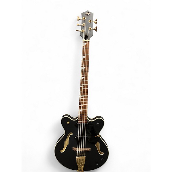 Experience classic tone and bold style with this Used Eastwood SEYE 5 Matte Black Electric Bass Guitar in great condition. Featuring a solid body, 5-string configuration, dual humbucking pickups, and a smooth maple neck with rosewood fingerboard, it delivers powerful low-end punch and versatile sound. Its sleek matte black finish adds an edgy aesthetic, making it perfect for any stage. Ideal for players seeking performance and retro-inspired design in one exceptional instrument.