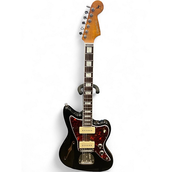Used Electravox Ultra Deluxe Offset Black Sparkle Hollow Body Electric Guitar
