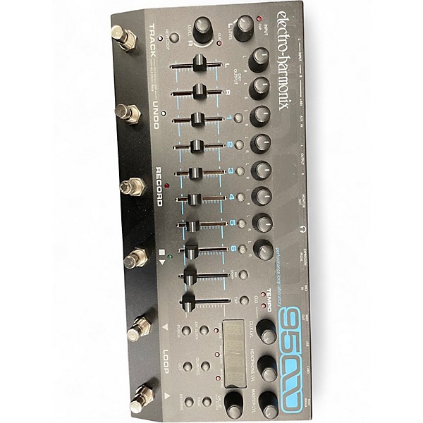 Used Electro-Harmonix 95000 Performance Loop Laboratory in great condition. This powerful stereo looper offers 6 mono tracks and 1 stereo mixdown with up to 375 minutes of recording time using the included 16GB SD card. Features include tap tempo, reverse, octave, and MIDI sync capabilities. Designed for live performance and studio use, the 95000 provides extensive looping functionality with uncompromised audio quality in a rugged and intuitive interface.
