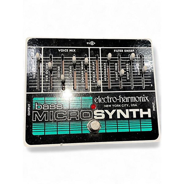 Unlock classic synth tones with the used Electro-Harmonix Bass Micro Synth, delivering fat analog synth sounds for your bass. In good condition, this pedal features controls for voice mix, attack delay, start/stop filter frequencies, and resonance. With true bypass and a rugged chassis, it's perfect for everything from funky filter sweeps to rich sub-octave grooves. Designed for 9V power, it's a versatile tool for studio or stage-ready low-end experimentation.