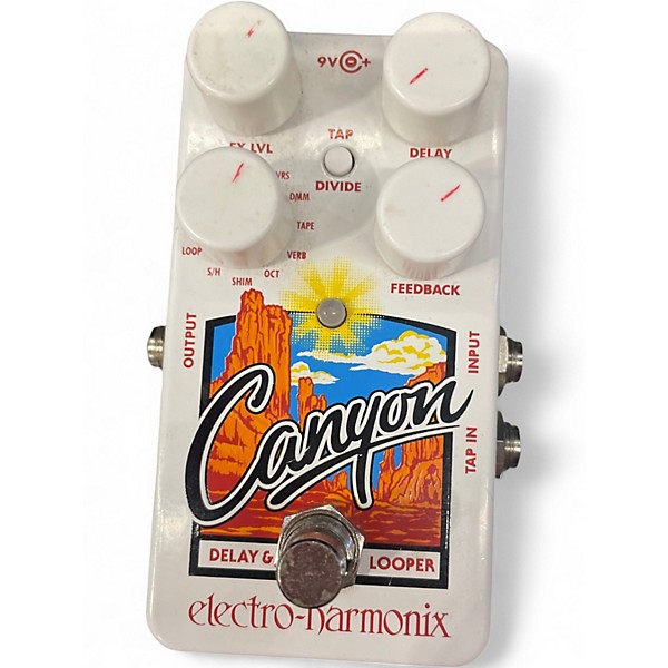 The Used Electro-Harmonix Canyon Delay and Looper offers 11 versatile effects including digital, tape, reverse, and shimmer delays, plus a 62-second looper—all in a compact, pedalboard-friendly design. This unit is in Good condition, fully functional with minor cosmetic wear. Featuring tap tempo, stereo output, and rugged construction, the Canyon delivers studio-quality sound and flexible performance options ideal for guitarists seeking creative delay textures and looping capabilities in one powerful pedal.