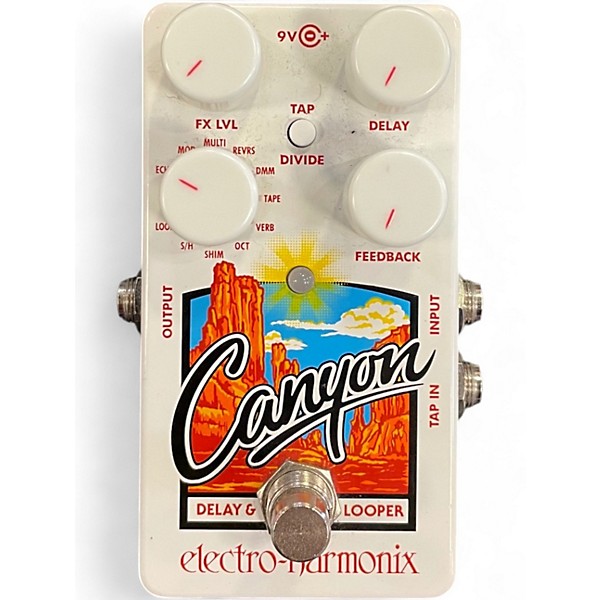 Compact and versatile, this used Electro-Harmonix Canyon Delay and Looper pedal is in good condition and offers 11 delay effects including echo, mod, reverse, and shimmer, plus a 62-second looper. Featuring tap tempo with tap divide, onboard modulation, and true bypass, it delivers rich, creative delay possibilities in a pedalboard-friendly size. Ideal for guitarists seeking diverse delay options, all packed into a reliable, road-worthy unit with intuitive controls and stereo output capabilities.