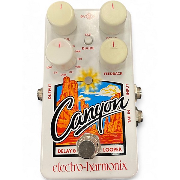 Compact and powerful, the used Electro-Harmonix Canyon Delay and Looper pedal offers 11 versatile delay effects including shimmer, tape, and reverse, plus a looper with up to 62 seconds of recording time. In great condition, this stereo-compatible stompbox features tap tempo, selectable tails, and a compact footprint perfect for any pedalboard. Ideal for guitarists seeking studio-quality delays and creative looping in one intuitive package. Runs on standard 9V power and includes true bypass switching.