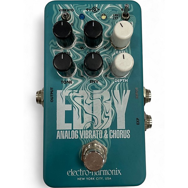 Discover lush, vintage-inspired modulation with this used Electro-Harmonix EDDY effect pedal in good condition. Designed for rich chorus and vibrato textures, it delivers warm, warbly depth with responsive controls for rate and depth, plus expressive dynamics for extra movement. Built in a compact, road-ready enclosure, it features standard 1/4" input/output and runs on 9V DC center-negative power for easy pedalboard integration. A great choice for adding character to guitar, bass, or keys.