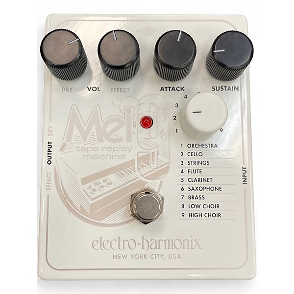 Bring vintage tape and Mellotron-style magic to your rig with this used Electro-Harmonix MEL9 Tape Replay Machine in great condition. This compact pedal transforms your guitar or keyboard signal into classic tape-instrument voices with responsive tracking and rich, organic texture. Simple controls for Volume, Attack, Sustain, and Effect tailor the feel, while the Dry output blends in your natural tone. Runs on standard 9V DC pedal power for easy pedalboard integration.