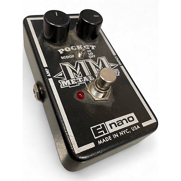 Used Electro-Harmonix Metal Muff Distortion Pedal in good condition delivers aggressive distortion with rich harmonic sustain, perfect for metal and hard rock. Features include a High, Mid, and Low EQ, Top Boost control for extra edge, and rugged footswitches. Operates on 9V battery or adapter (not included). Built for power and tone shaping, this pedal is a versatile addition to any guitarist’s rig seeking commanding distortion and tonal control.