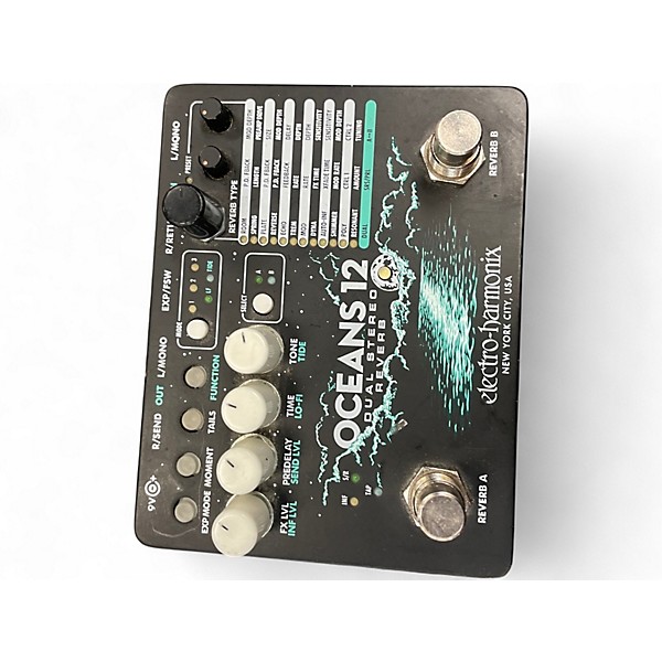 Used Electro-Harmonix OCEANS 12 Dual Stereo Reverb Pedal in good condition, offering 12 stereo reverb effects including shimmer, reverse, and auto-infinite. Features dual reverb engines for parallel or series operation, stereo I/O, and advanced controls like tap tempo and expression pedal input. Save and recall presets with ease. Delivers studio-quality sound perfect for guitarists seeking ambient depth and versatility. Professionally tested and fully functional, this pedal is ideal for players looking to expand their sonic palette.