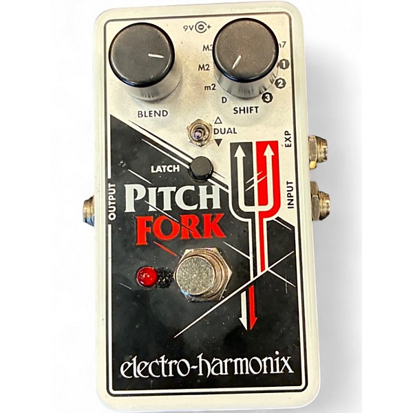 Explore new sonic territory with this used Electro-Harmonix PITCH FORK in great condition, a compact polyphonic pitch shifter that delivers precise transposition up to ±3 octaves. Choose up or down shifting, blend with the dry signal for thick harmonies, or toggle Latch and Momentary modes for instant effects. An expression input enables real-time pitch sweeps and whammy-style bends, making it perfect for guitar or bass on any pedalboard.