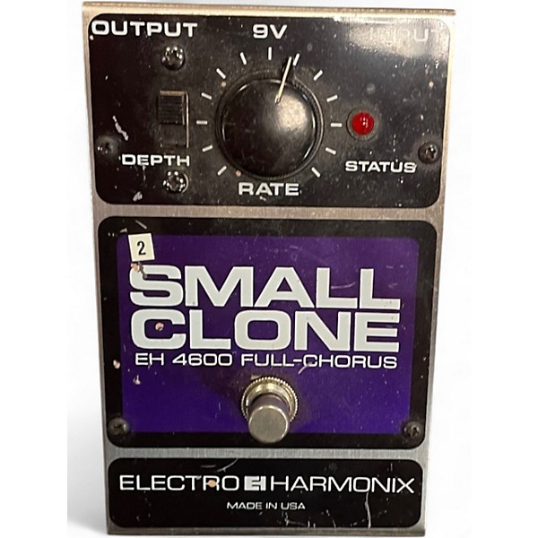 Used Electro-Harmonix Small Clone Analog Chorus pedal in good condition. Delivers rich, true analog chorus with a lush, dimensional tone perfect for guitar or bass. Features a single Rate knob and a Depth switch for easy tone shaping, housed in a rugged metal chassis. Powered by a 9V battery or 9V power adapter (not included). Known for its classic warm modulation, the Small Clone is a favorite among players seeking vintage-style chorus sounds.