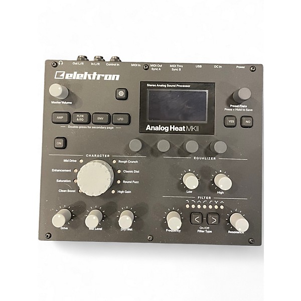 Used Elektron ANALOG HEAT MKII in great condition, this powerful stereo analog sound processor features eight selectable analog distortion circuits, stereo analog filter, 2-band EQ, and flexible modulation with assignable LFOs and envelopes. With USB audio interface capabilities, it integrates seamlessly into your studio setup. Perfect for adding warmth, grit, or full-on distortion to your audio tracks while maintaining pristine signal quality. Take your sound design to the next level with this versatile hardware unit.
