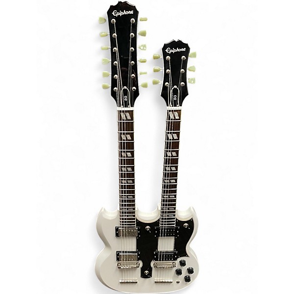 Experience iconic double-neck power with this used 2012 Epiphone G-1275 Double Neck in Alpine White, in great condition. Featuring 6- and 12-string necks, a solid-body design, dual humbucking pickups, 3-way selector, and independent volume/tone controls, it delivers massive, versatile tones for everything from classic rock to layered studio parts. Comfortable to play and stage-ready, this standout guitar brings legendary looks and huge sound in one instrument.