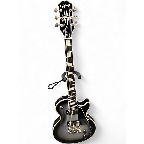Turn heads with this Used 2022 Epiphone Les Paul Custom in Silverburst, in Excellent condition, delivering classic LP sustain and sleek Custom style. Its solid-body design, comfortable set-neck feel, and dual humbucker pickups provide thick, punchy tones for rock, blues, and beyond. Features include a 24.75" scale length, 22-fret fingerboard, tune-o-matic style bridge with stopbar tailpiece, and dependable sealed tuners for stable tuning and smooth playability.