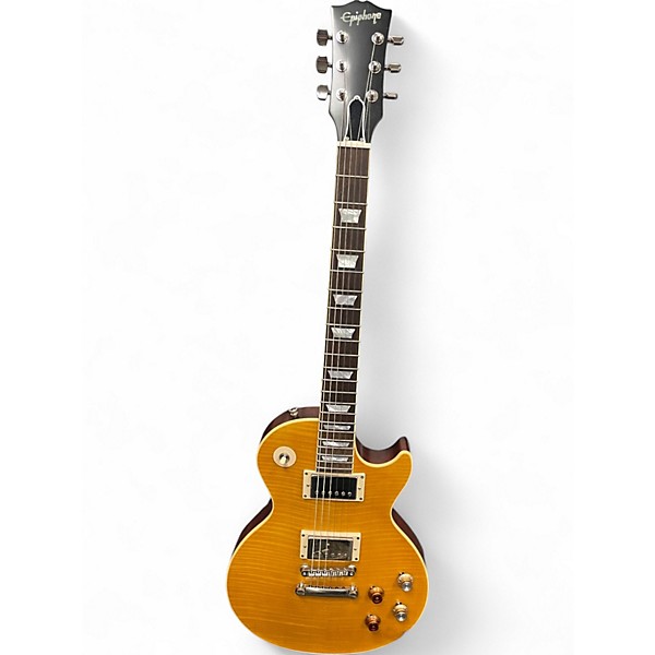 Bring iconic “Greeny” vibe to your rig with this used Epiphone 59 GREENY Yellow solid body electric guitar in great condition. Inspired by the legendary ’59-style Les Paul, it delivers rich sustain and classic rock bite with dual humbuckers, a mahogany body and set neck, and a comfortable 24.75" scale. The vintage-style Tune-o-matic bridge and stopbar tailpiece keep tuning stable while you dial in everything from warm blues to soaring leads.
