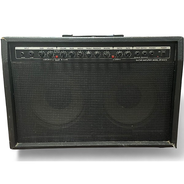 Plug in and play with this used Epiphone EP SC2101 guitar combo amp in good condition, offering reliable tone for practice or small jams. Featuring a single 10-inch speaker in a compact cabinet, it delivers punchy cleans and responsive overdrive with straightforward controls for quick dialing. A built-in headphone output makes quiet practice easy, while the durable design is ready for regular use. Great value for players wanting classic combo convenience.