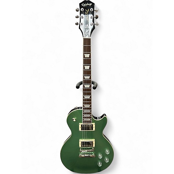 Used Epiphone Les Paul Muse in stunning Mint Green finish, featuring a lightweight chambered mahogany body and a maple top for rich tone and sustain. This solid body electric guitar is in great condition and comes equipped with Alnico Classic PRO humbuckers, push/pull coil-splitting, and phase controls for versatile sound shaping. A slim taper neck and 22-fret Indian laurel fingerboard ensure smooth, comfortable playability—perfect for players seeking both style and performance.