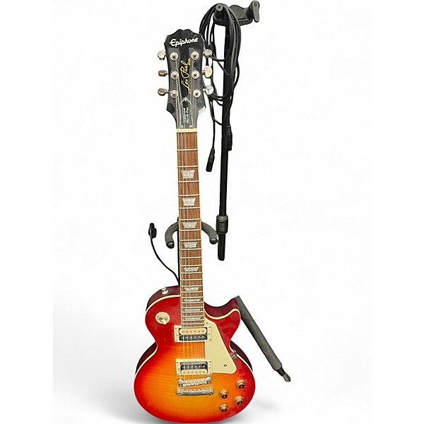 Used Epiphone Les Paul Traditional PRO III in classic 2 Color Sunburst delivers vintage Les Paul looks with modern flexibility. This solid body electric features a comfortable mahogany body with a maple top, a set mahogany neck, and a rosewood fingerboard for warm sustain and smooth playability. Dual PROBucker humbuckers provide rich rock tone, while push/pull coil-splitting expands your palette. In good condition with normal cosmetic wear, fully ready to play.