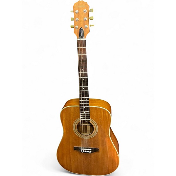 The Epiphone PR350ME NS is a full-size dreadnought acoustic-electric guitar featuring a natural finish, mahogany back and sides, and a spruce top for warm, balanced tone. Equipped with a built-in passive pickup system, it's stage-ready and perfect for both practice and performance. This used model is in good condition with only minor signs of wear, offering reliable playability and rich sound quality for players seeking vintage Epiphone craftsmanship at an affordable price.