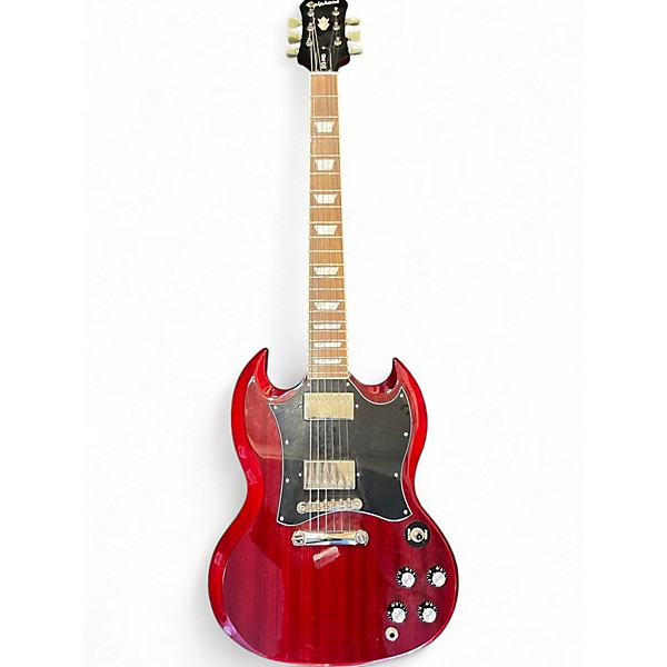Turn up the heat with this Used Epiphone SG Pro in classic Red, a great-condition solid body electric built for punchy rock tones and fast playability. It features a slim, double-cutaway SG-style body for easy upper-fret access, dual humbucking pickups for thick, powerful sound, a 3-way pickup selector, and independent volume and tone controls to shape everything from clean crunch to soaring leads. Perfect for stage or studio.