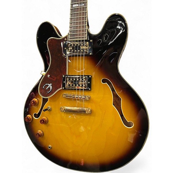 Used Epiphone Sheraton II Left Handed 3 Tone Sunburst Hollow Body Electric Guitar