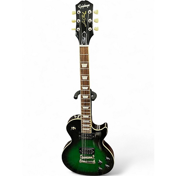 Unleash iconic Slash tone with this used Epiphone Slash Signature Les Paul Classic in stunning Anaconda Burst. In good condition, this solid-body electric pairs classic Les Paul feel with modern power, featuring a mahogany body with maple cap, set mahogany neck, laurel fingerboard, 22 frets, and a 24.75" scale. Dual humbuckers deliver thick sustain and punch, controlled by a 3-way selector with independent volume and tone knobs.