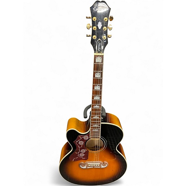 Used Epiphone j-200 EC Studio Lefthanded 2 Color Sunburst Acoustic Electric Guitar