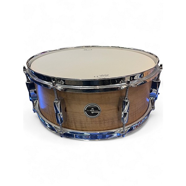 Used Erie Drum Co 14X5.5 TIGER MAPLE SNARE Worn Natural Drum