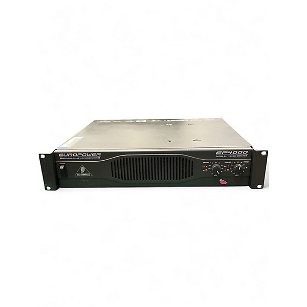 Used Behringer EUROPOWER EP4000 in Good condition—an affordable, road-ready power amp for keyboard rigs, PA setups, and monitoring. Delivers up to 2 x 550W at 4Ω (stereo), 2 x 400W at 8Ω, or up to 1100W at 8Ω bridged, with high-current performance and dependable cooling. Features balanced XLR and 1/4" inputs plus Speakon and binding-post speaker outputs for flexible system integration.