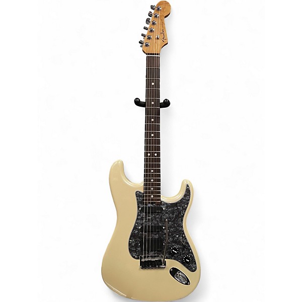 Used Fender American Elite Stratocaster in striking Aztec Gold, featuring upgraded EMG active pickups for powerful, noise-free tone. This solid body electric guitar boasts an alder body, maple neck with compound-radius ebony fingerboard, and locking tuners for exceptional playability and tuning stability. In Good condition with light cosmetic wear, it delivers modern performance with classic Strat style, perfect for players seeking versatility and pro-level sound in a standout finish.