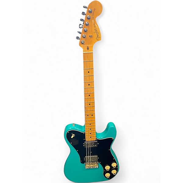 Used Fender American Professional II Telecaster Deluxe in striking Miami Blue finish, in great condition with minimal signs of wear. This solid body electric guitar features a contoured alder body, maple neck with a Deep "C" profile, and a 22-fret maple fingerboard. Dual V-Mod II Double Tap humbuckers deliver powerful, versatile tone. Includes a 3-way selector switch, push-pull tone controls, and a classic Tele six-saddle bridge for superior tuning stability and sustain.