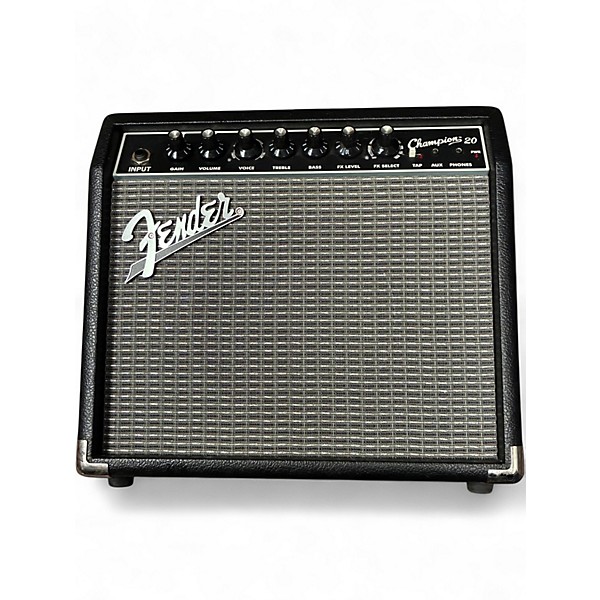 Used Fender Champion 20 Guitar Combo Amp in great condition. This 20-watt solid-state amp features a single 8" Fender Special Design speaker, offering a wide range of tone options with onboard amp voicing and digital effects like reverb, delay, and chorus. Compact and easy to use, it's perfect for practice or small gigs. Includes a 1/4" input, aux input, and headphone jack for quiet play. Reliable Fender quality with versatile sound in a portable package.