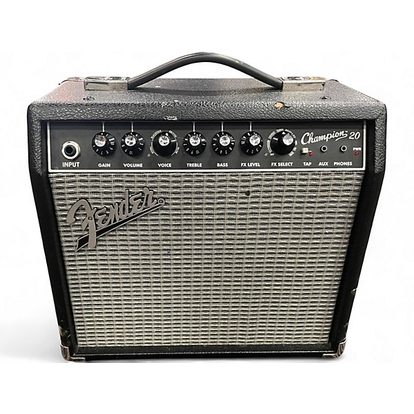 Used Fender Champion 20 Guitar Combo Amp in good condition, perfect for practice and small jams with classic Fender tone and modern versatility. This 20-watt solid-state combo features an 8" Fender Special Design speaker, multiple amp voicings, and built-in effects like reverb, delay/echo, chorus, tremolo, and more. Simple controls make dialing in clean sparkle or gritty drive fast, while the compact, grab-and-go design fits easily in any room or studio setup.