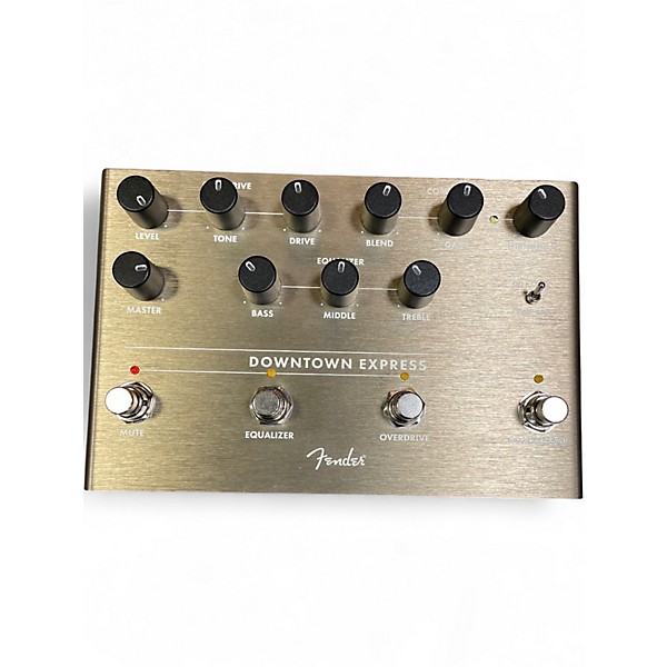 Used Fender Downtown Express Effect Processor in excellent condition. This all-in-one bass multi-effect pedal combines overdrive, compression, and 3-band EQ in a sleek, stage-ready unit. Designed by Fender with inputs from pro players, it features individual footswitches for each function and controls for level, blend, and gain. Built with durable anodized aluminum and true bypass switching, it's perfect for bassists seeking powerful tone shaping and rugged reliability in a compact layout.