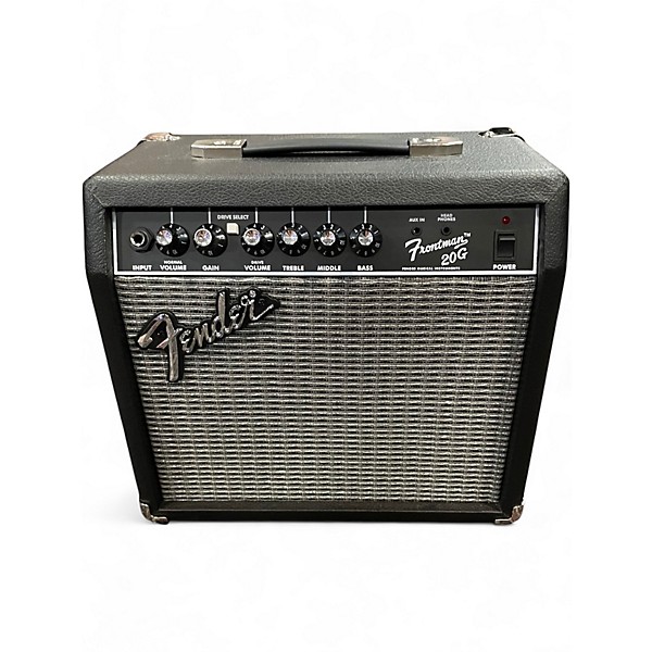 Experience classic Fender tone with this Used Fender Frontman 20G Guitar Combo Amp in Excellent condition. Featuring 20 watts of power through an 8-inch speaker, it offers both clean and overdrive channels for versatile sound. Perfect for practice or small jam sessions, it includes a 1/4" headphone jack and auxiliary input for silent practice. With intuitive controls and sturdy construction, this compact amp delivers reliability and great tone at an affordable price.