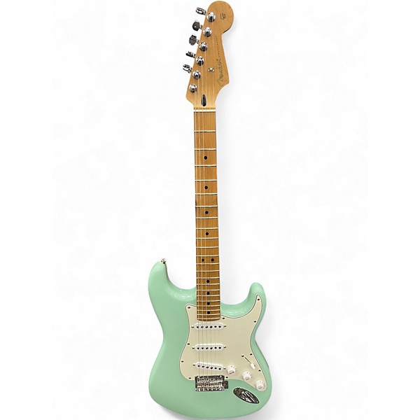 Used Fender Limited Edition Player Stratocaster in Surf Green, this solid body electric guitar is in Excellent condition and features an alder body, maple neck with modern "C" shape, and a 22-fret maple fingerboard. Equipped with three Player Series Alnico 5 Strat single-coil pickups and a 2-point tremolo bridge, it delivers classic tone with modern versatility. A striking limited edition finish and smooth playability make this Strat a standout for players and collectors alike.