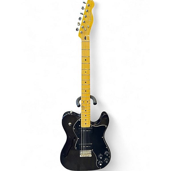 Used Fender Modern Player Telecaster Thinline Deluxe in Brown offers vintage style with modern versatility. Featuring a semi-hollow body, dual MP-90 pickups, maple neck with a 9.5" radius, and 22 medium jumbo frets, this guitar delivers warm tones and responsive playability. The instrument is in fair condition with visible signs of wear but still functions well for performance or practice. A great option for players seeking Fender tone on a budget.