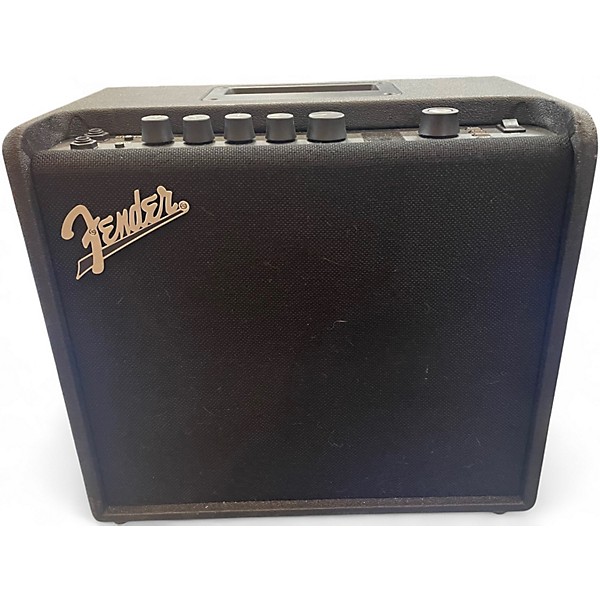 Used Fender Mustang LT25 25W 1x8 Guitar Combo Amp in good condition. This compact, lightweight amp features a single 8-inch speaker, 25 watts of power, and a wide range of built-in digital amp models and effects. With USB connectivity and an intuitive color display, it's perfect for practice or recording. Simple controls and preset storage make tone customization easy for players of any level. Great tone and performance in a portable package.