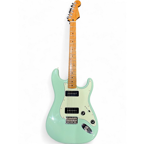 Used Fender Noventa Stratocaster in stunning Seafoam Green, in excellent condition. Features an alder body, maple neck with a modern "C" profile, and a 21-fret maple fingerboard. Equipped with three MP-90 single-coil pickups for punchy, dynamic tone and a hardtail bridge for enhanced sustain and tuning stability. This solid body electric guitar offers vintage style with modern performance, perfect for players seeking bold sound and sleek looks.