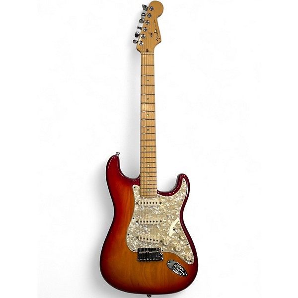 Used Fender Stratocaster Deluxe in stunning Cherry Red finish, this solid body electric guitar is in excellent condition and delivers legendary Fender tone. Featuring three Noiseless pickups, a comfortable modern "C" maple neck with 22 medium jumbo frets, and a 2-point synchronized tremolo bridge for smooth playability. The alder body ensures bright, balanced sound, making it perfect for stage or studio. A versatile, reliable classic with premium features and iconic style.